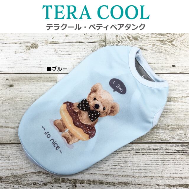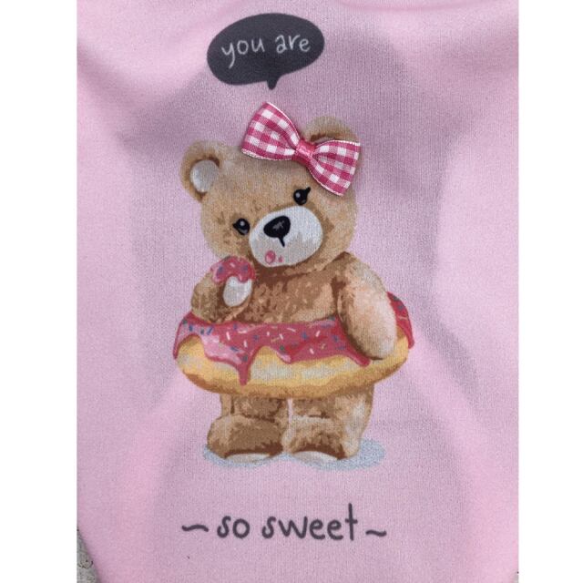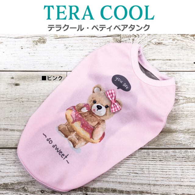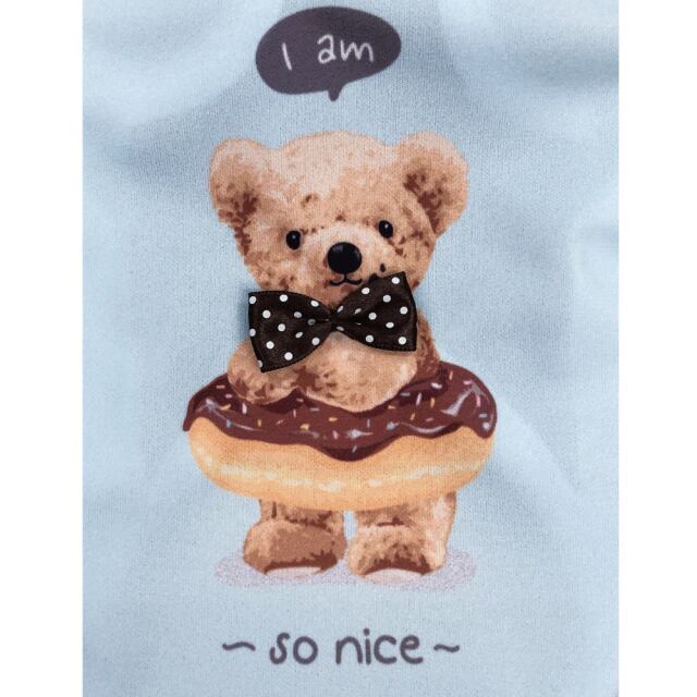 背中はスーパークール×クール生地、前身頃はテラヘルツ生地使用。 「クール加工」「防虫加工」「UVカット加工」「抗菌・消臭加工」4つの「スーパークール×クール」機能+「テラヘルツワン」の機能まで網羅したコスパ抜群の「テラクール」。 スーパークール×クール生地のみ使用のウェアよりも伸びが良いのも高ポイント♪ ドーナツを浮き輪に見立てた可愛いベアがプリントされたタンクトップ。