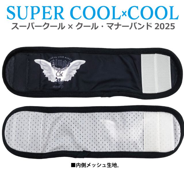 2025年クークチュール夏物新作マナーバンド登場! 「クール加工」「防虫加工」「UVカット加工」「抗菌・消臭加工」4つの機能が1枚に凝縮した「スーパークール×クール」。 表はスーパークール×クール生地。内側はスーパークール×クール加工のメッシュ生地で通気性もバツグン。 楽しいPOP柄、スタイリッシュなウィングプリントのマナーバンド。