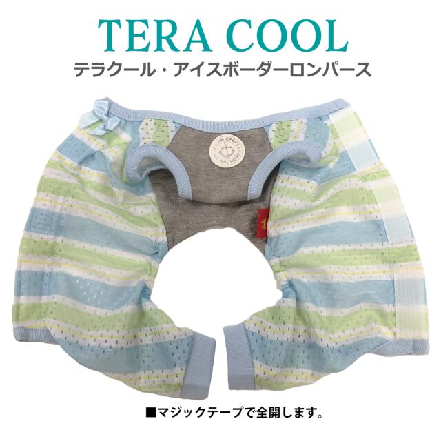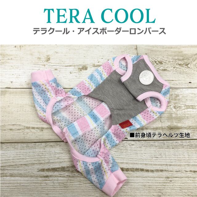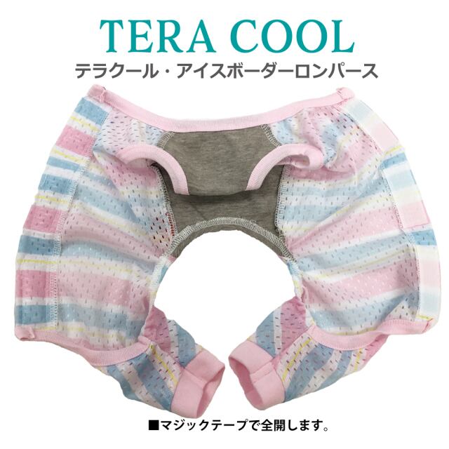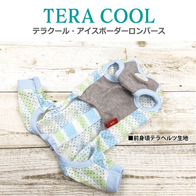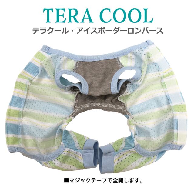 2025年クークチュール夏物新作登場! 背中はスーパークール×クール生地、前身頃はテラヘルツ生地使用。 「クール加工」「防虫加工」「UVカット加工」「抗菌・消臭加工」4つの「スーパークール×クール」機能+「テラヘルツワン」の機能まで網羅したコスパ抜群の「テラクール」。 スーパークール×クール生地のみ使用のウェアよりも伸びが良いのも高ポイント♪ アイスボーダー+リボン+皮ワッペンの背中開きロンパース。マジックテープで全開するので着脱ラクチン。 SS/S/M/L/LL/3L/ST/MT/LTサイズあります。 ※FBM/FBL/XL/JL/SLサイズはありません。