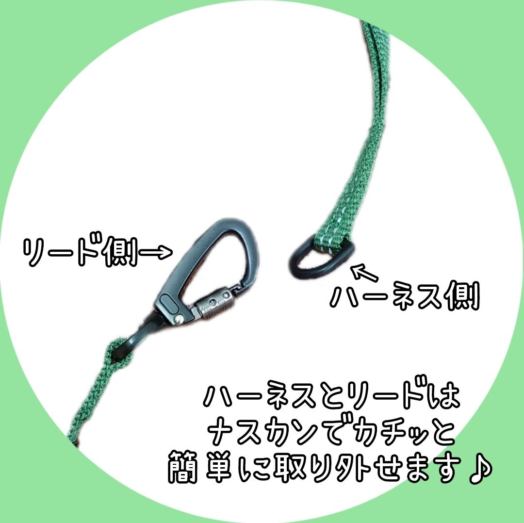 ※ハーネス本体とリードはナスカンとDカンで取り外しが可能です。