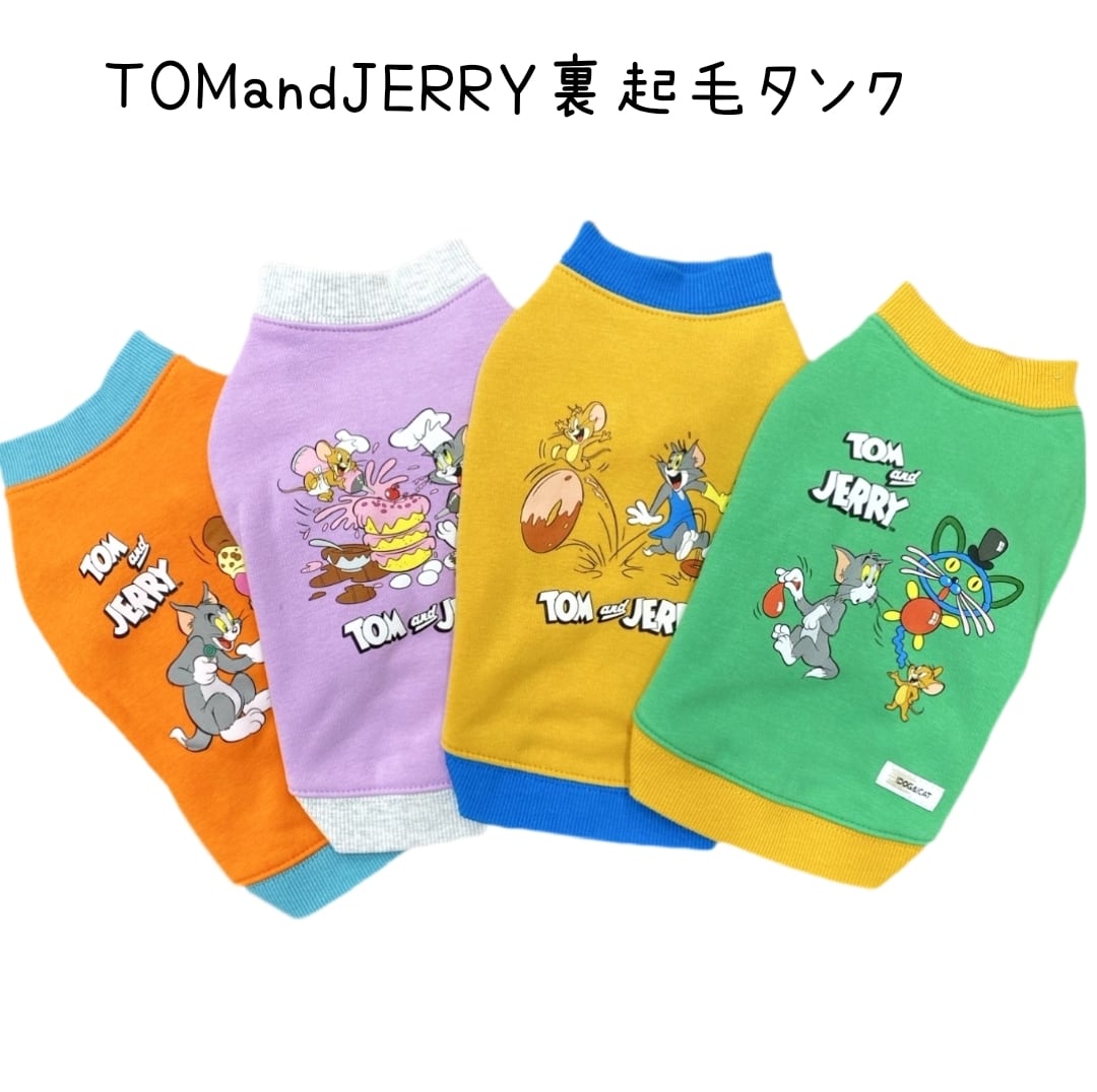 トムとジェリーがプリントされた裏起毛のあたたかいタンクトップです。