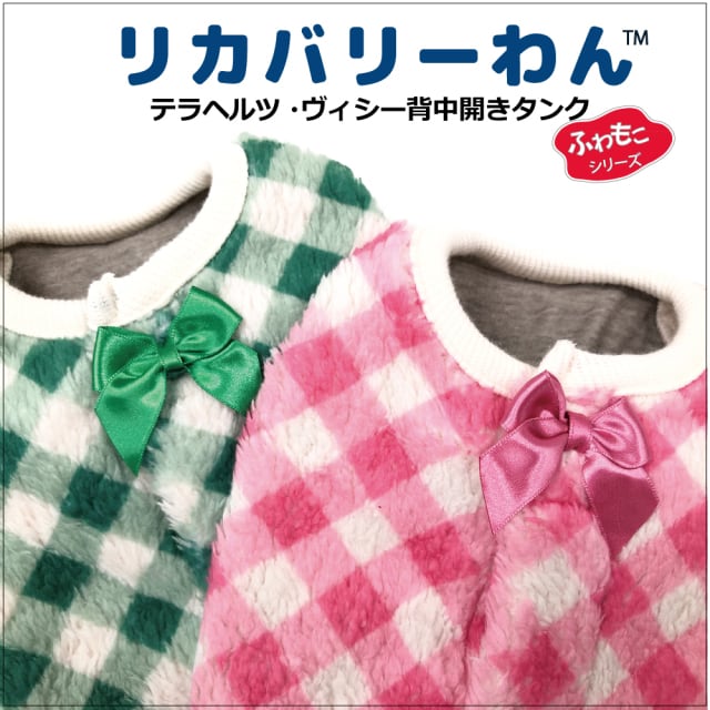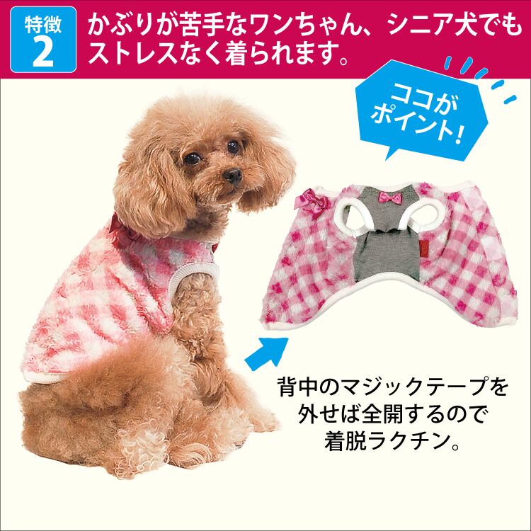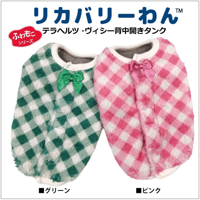 “着るケア”で、愛犬の健康をもっと長く、もっとやさしく守ります。 ギンガムチェック柄の背中開きタンク。 マジックテープで全開するので着脱ラクラク。 背中がふかふかのボア生地。前身頃はテラヘルツ生地使用。 同じ柄のタンクトップ、ベルクロテラバンドBOYあります。