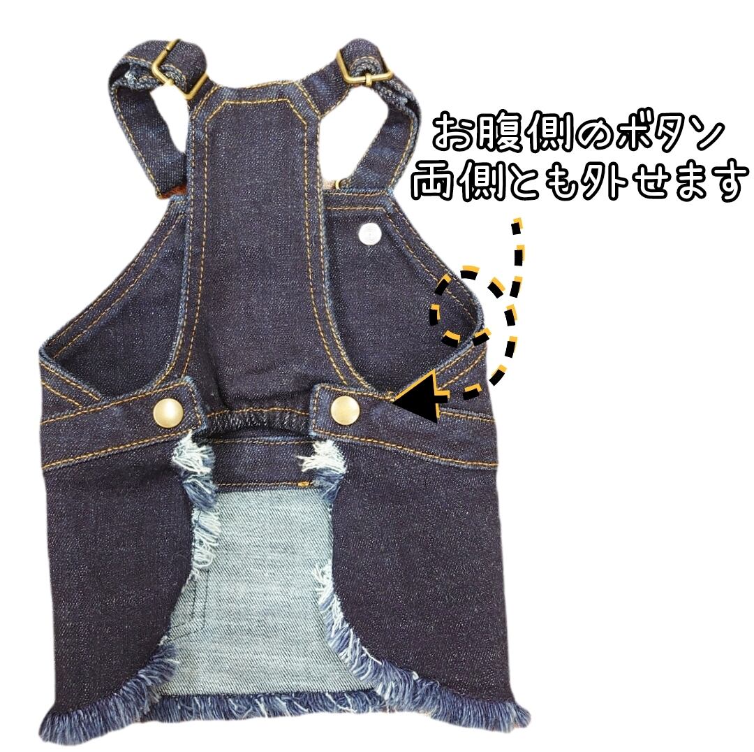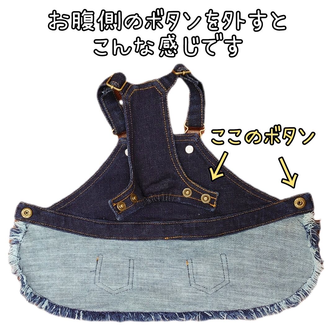 アジャスターで長さ調整が出来て、袖の肩紐を外して着れます。さらに、腰のボタンも外せるので着脱しやすいですよ♪