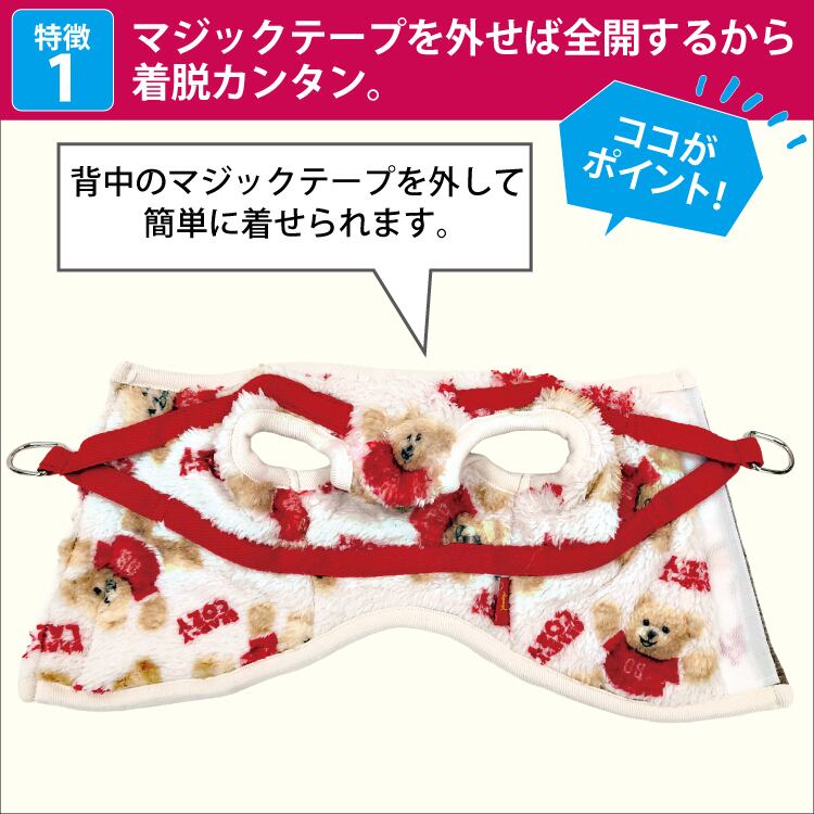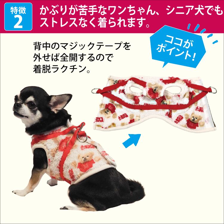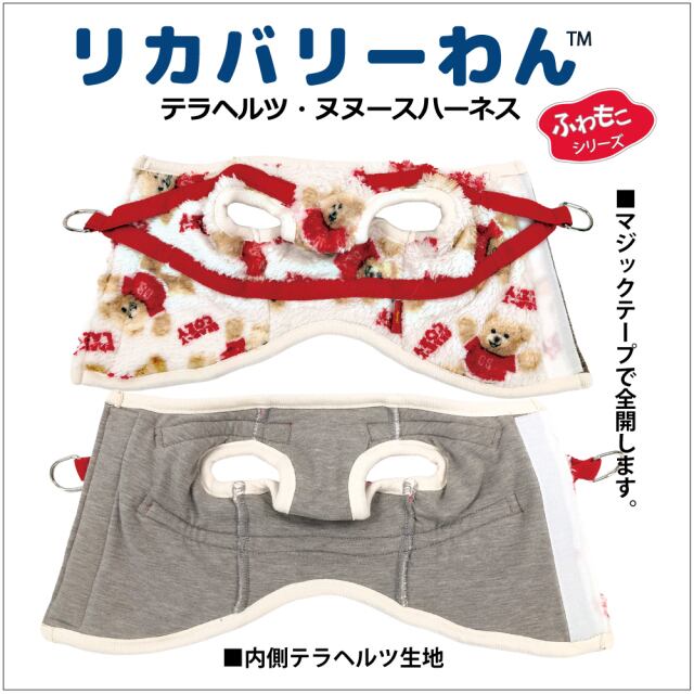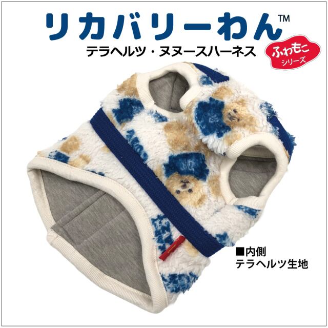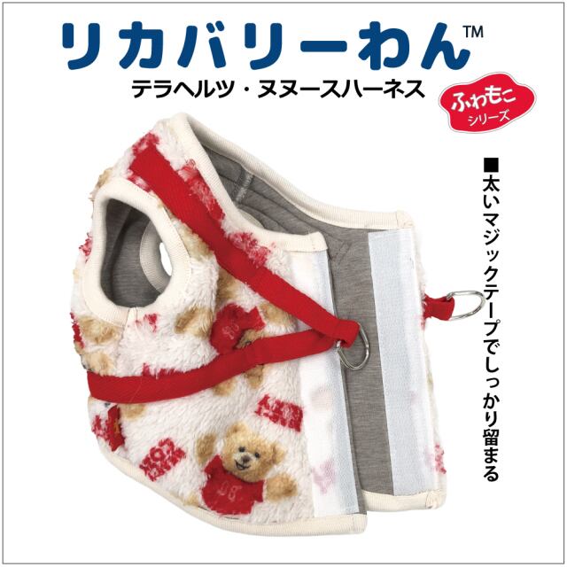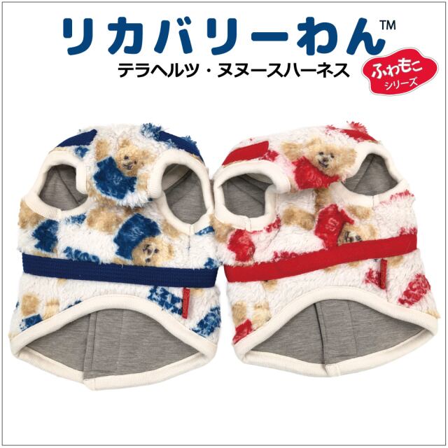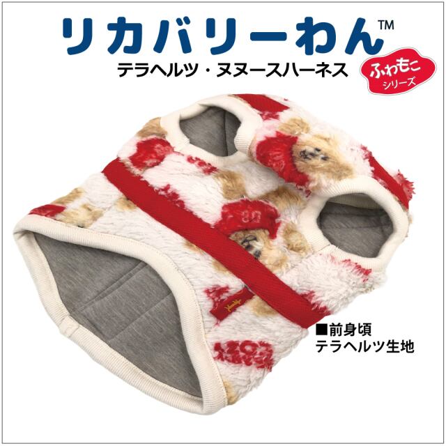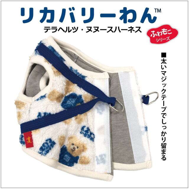 究極のパワーストーンといわれるテラヘルツ人工鉱石を配合した生地を使用しています。 ワンちゃんの体の事を考えて作った機能素材「リカバリーわんTM」シリーズ。 テラヘルツは身体の弱い部分に働きかける作用があります。浸透能力に優れており、健康を促す働きをすると言われています。 お散歩が好きな子にも、年齢を重ねたシニア犬にも。 “着るケア”で、愛犬の健康をもっと長く、もっとやさしく守ります。 定番人気のボーダーハーネス。背中がふかふかのボア生地。前身頃はテラヘルツ生地使用。 クークチュールのハーネスは太いマジックテープでしっかり留まる。お散歩や外出、旅行に最適。