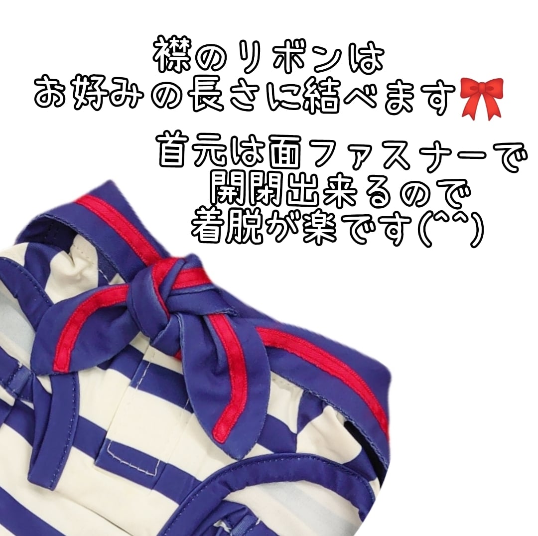 襟のリボンはほどけるので、お好みの長さに調整できます。