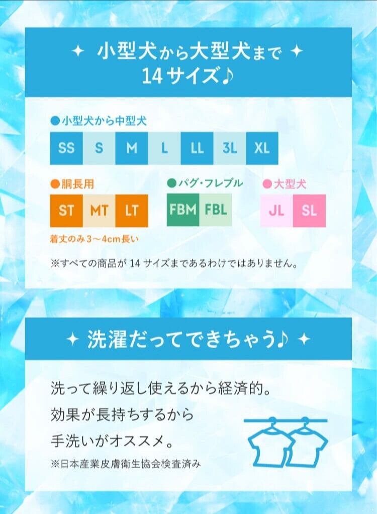 濡らす必要がなく、そのまま着せるだけで涼しいドッグウェア。 「スーパークール×クール機能」でひんやり効果。ワンちゃんの熱中症対策にも。