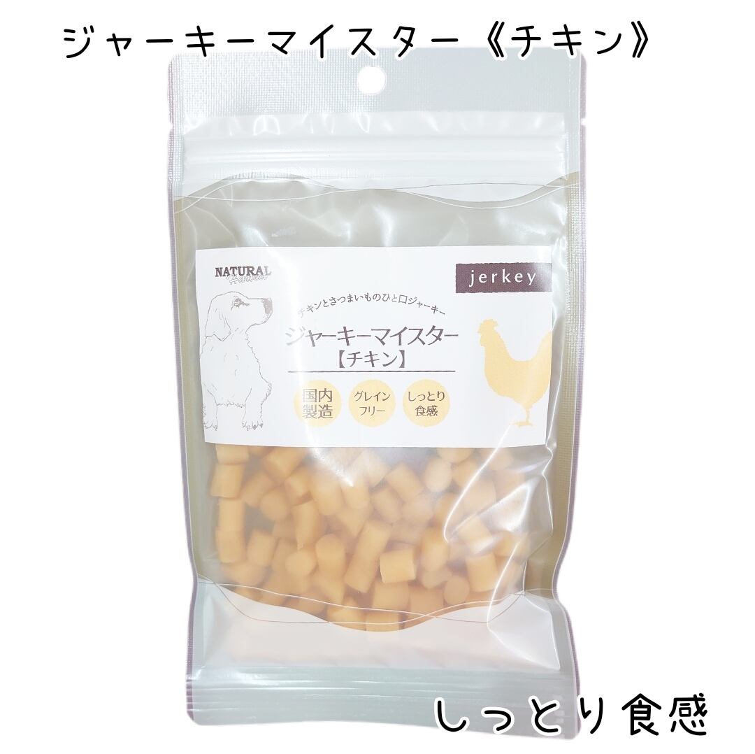 チキンとサツマイモのセミモイストタイプの約1cmの食べやすいジャーキーです。
