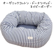 【犬用ベッド】オーガニックコットン・ドーナツベッド・ネイビーボーダーS