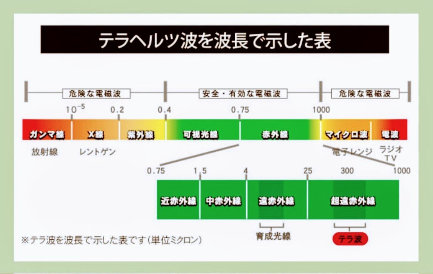身体を構成する水分子の固有振動数に近く身体の深部に浸透すると水分子が共振し、身体内部の弱っている部分に働きかけることで細胞が活性化され健康を促す働きをするといわれています。
