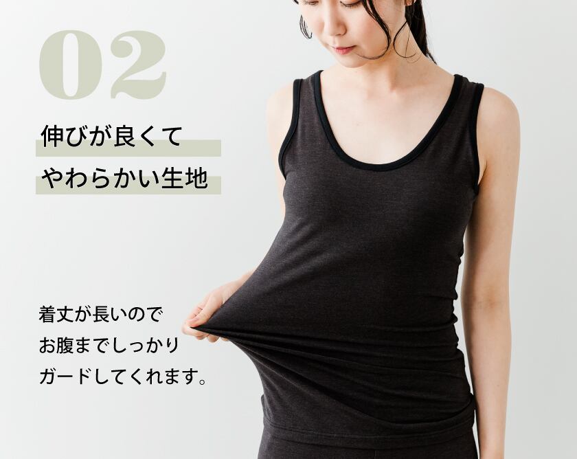 テラヘルツ鉱石を配合したビューティー&ヘルスサポートシリーズです。 普段着インナーとしてはもちろん、着丈が長めで ヨガやワークアウトなどの”動”にも最適なタンクトップが登場!!