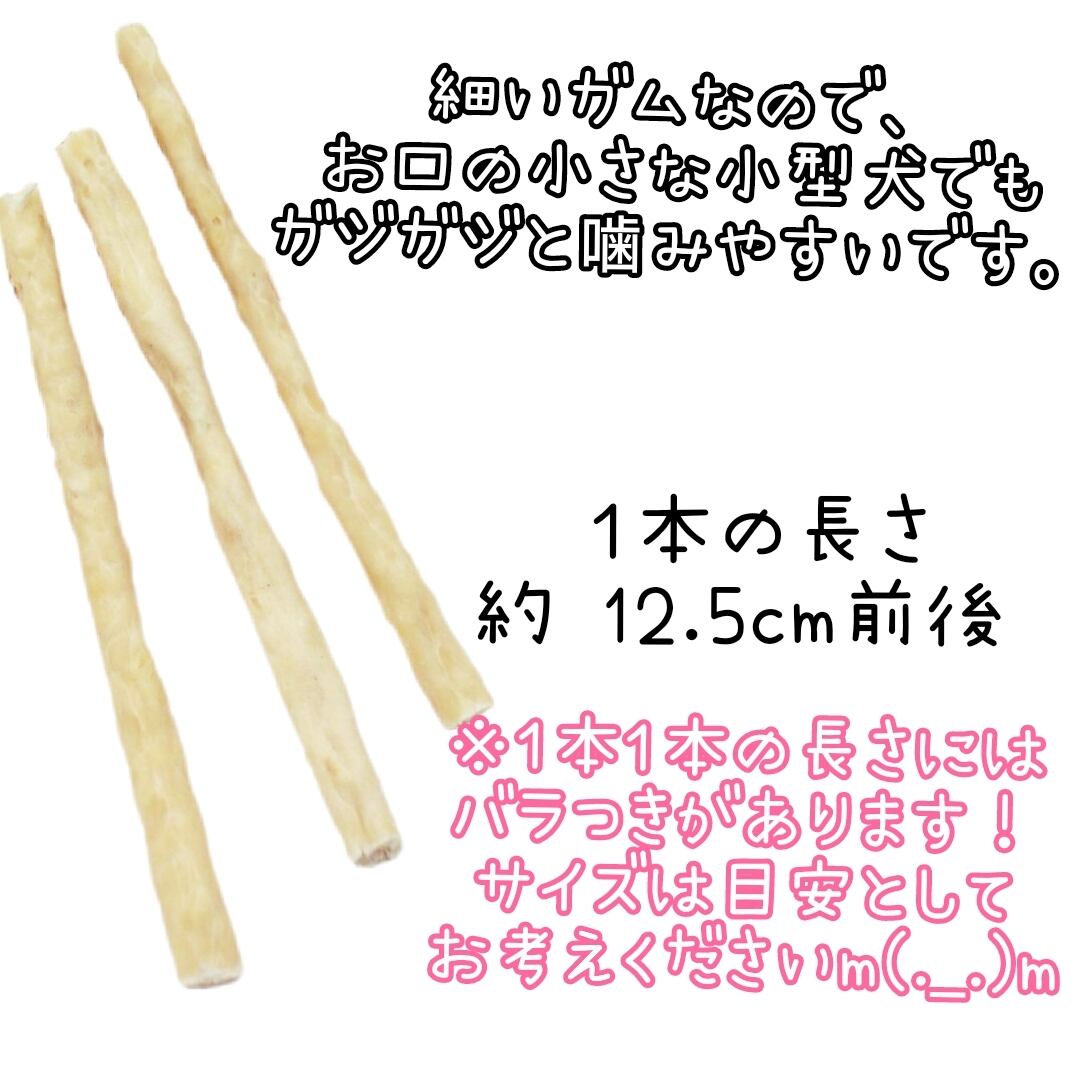 身体の小さなワンコも食べやすい細さで、美味しく歯みがきもできるので、とっても人気のガムです!