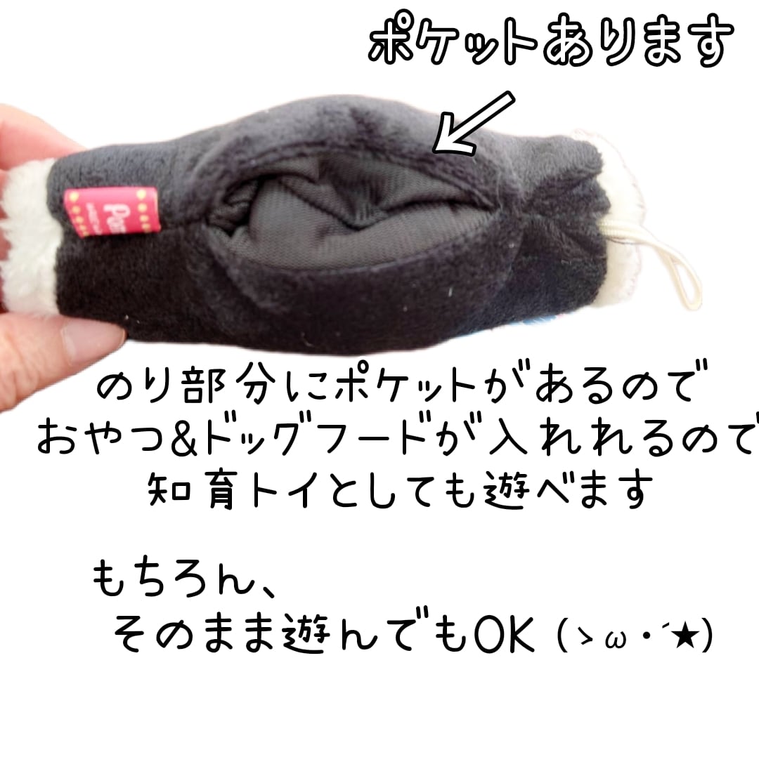 海苔部分に幅広のポケット付きで、おやつ&フードを入れて知育トイとして遊べます!