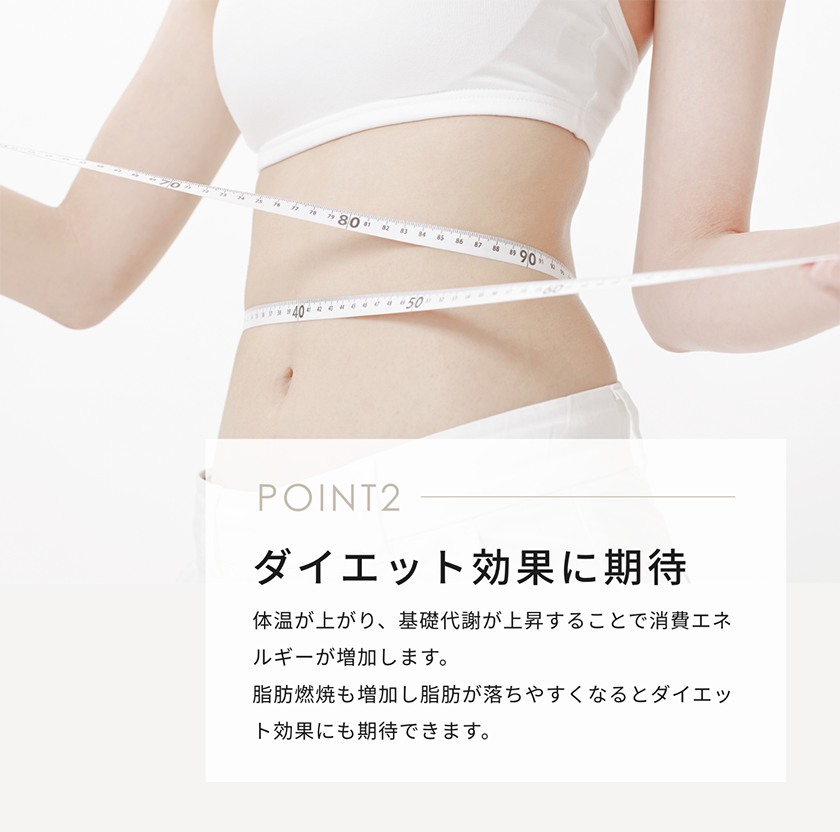 テラヘルツ波は体の内部に浸透し細胞にアプローチするため、『体温上昇』や『基礎代謝』、『免疫力アップ』など本来の体のリズムを整える効果が期待できます!