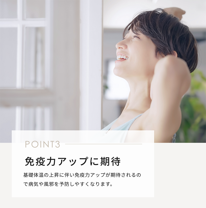 基礎体温の上昇に伴い免疫力アップが期待されるので病気や風邪を予防しやすくなります。