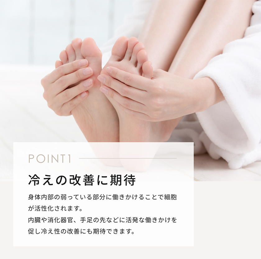 内臓や消化器官、手足の先などに活発な働きかけを促し冷え性の改善にも期待できます。
