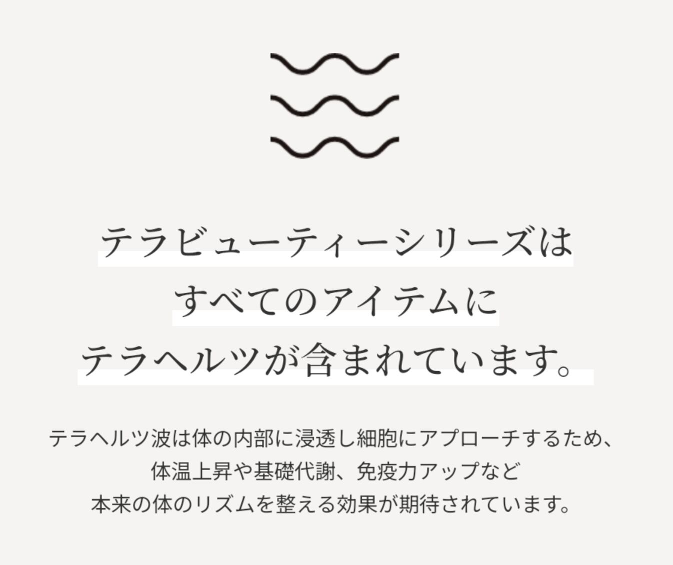 究極のパワーストーンといわれるテラヘルツ人工鉱石を配合した繊維を使用してデザインから縫製に至るまでの全工程を完全国内生産で丁寧に作ったビューティー&ヘルスサポートアイテムシリーズです。